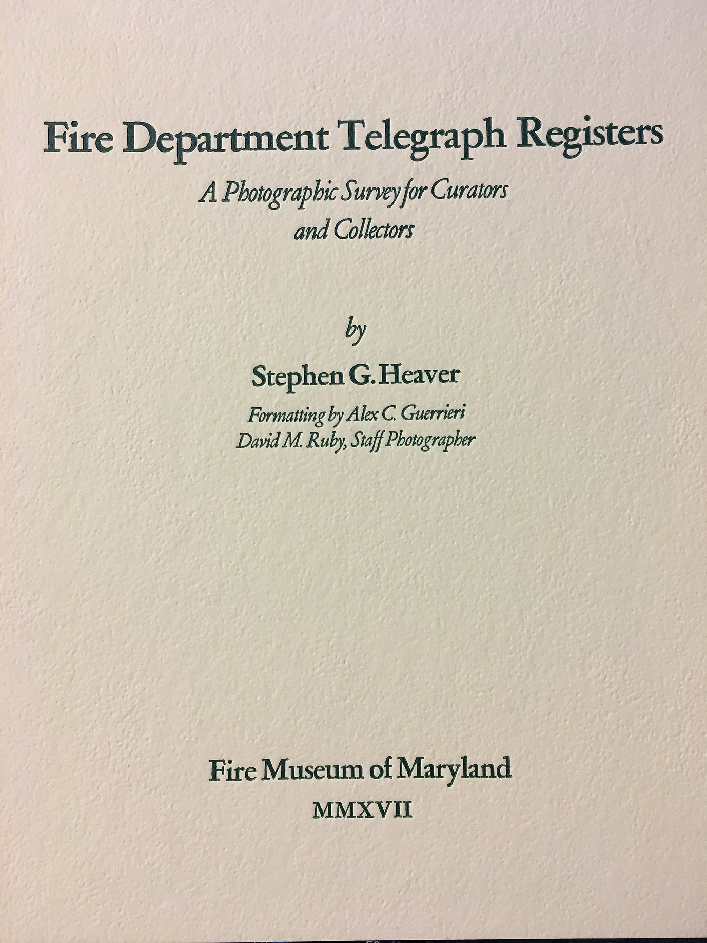 2014, Stephen G. Heaver, Layout by Alex C. Guerrieri, Photographs by David M. Ruby, 106 pages, color and black-and-white photographs, spiral bound.